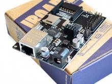 IBoard W5100 - плата 2 в 1 - кроме основного микроконтроллера ATmega328, на ней установлен чип W5100, отвечающий за Ethernet соединение, что делает плату идеальным решением для небольшого сервера, предназначенного, например, для сбора, хранения, обработки, и отправки показаний датчиков.