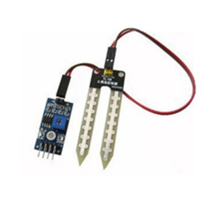 Сенсор влажности почвы — простой в устройстве датчик для определения влажности земли, в которую он погружен. Он позволит узнать о недостаточном или избыточном поливе ваших домашних или садовых растений. Между двумя электродами создаётся небольшое напряжение. Если почва сухая, сопротивление велико и ток будет меньше. Если земля влажная — сопротивление меньше, ток — чуть больше. По итоговому аналоговому сигналу можно судить о степени влажности.