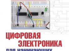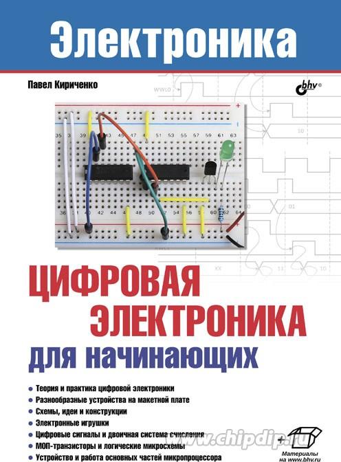 познавательных устройств на транзисторах и микросхемах, которые сразу после сборки начинают работать, не требуя пайки, наладки и программирования. Набор необходимых деталей сведен к минимуму как по количеству наименований, так и по стоимости. По ходу изложения даются вопросы для самопроверки и закрепления материала, а также творческие задания на самостоятельную разработку схем. Рассмотрены цифровые сигналы и двоичная система счисления, простейшие схемы на МОП-транзисторах, устройства цифровой логики на транзисторах и микросхемах, комбинационные и последовательностные схемы, сдвиговые регистры и счетчики.