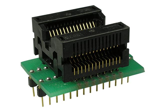 Переходник SOIC18 / SOIC20 / SOIC24 / SOIC28 >>> DIP28 позволяет устанавливать микросхемы, имеющие корпус SOIC (300 mil. Body) c числом выводов от 18 до 28 в стандартные ZIF DIP панели программаторов. Выводы SOIC ZIF панели переходника без "перехлёстов", один к одному соединены с соответствующими штырями ответной части DIP.