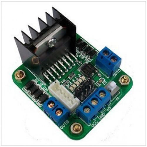 Модуль управления моторами RKP-01A на микросхеме L298N. С его помощью можно контролировать вращение двух независимых коллекторных моторов постоянного тока (DC-моторов) или одного двухобмоточного четырехпроводного шагового двигателя.