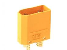 Силовые разъемы серии XT90 (папа). Отличаются высокой надежностью, а также способностью выдерживать большие токи (до 90А) при небольших размерах. Контакты позволяют «подпаивать» к ним провод сечением 5мм². У разъемов XT90 большая площадь контакта, это значит меньшее сопротивление и, следовательно, большие токи могут протекать без нагрева в месте соединения.